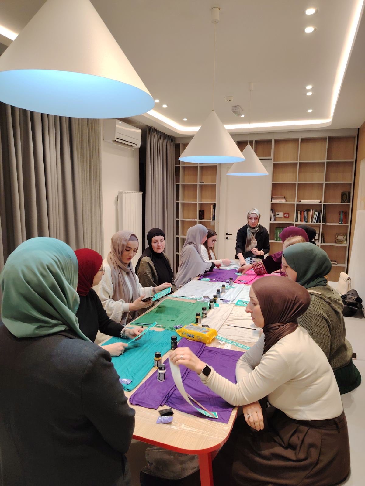 Posebnu vrijednost događaju dale su kreativne radionice, koje su pripremile i realizirale profesorica Selvedina Rezaković i Dženita Mulahmetović. Radionice su bile osmišljene kao prostor opuštanja, izražavanja i međusobnog povezivanja. Kroz oslikavanje marama, učesnice su imale priliku da kroz boje, motive i simbole izraze vlastitu emociju, identitet i doživljaj hidžaba. Paralelno s tim, radionica stilskog pokrivanja ponudila je praktične savjete i ideje, ali i poruku da hidžab može biti skladan spoj estetike, ličnosti i funkcionalnosti, bez gubitka svoje suštine.